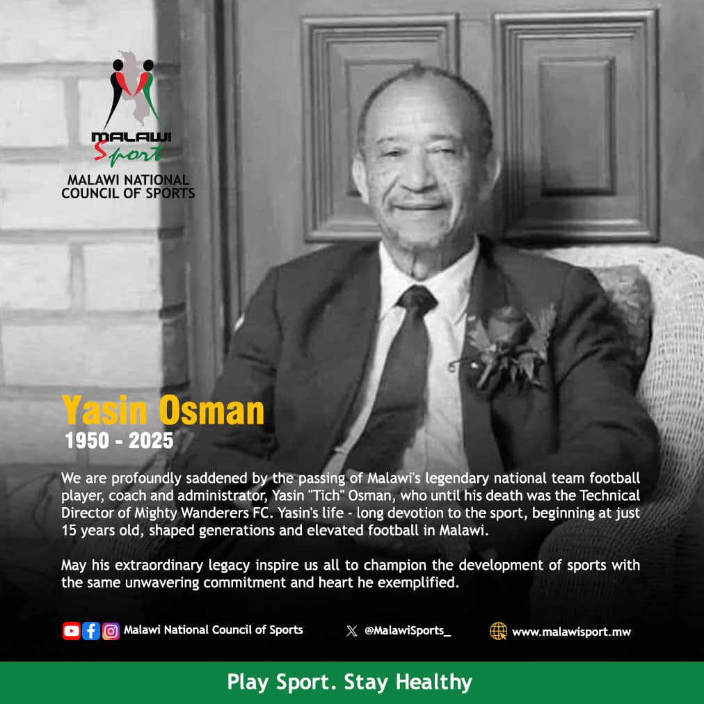 We are profoundly saddened by the passing of Malawi’s legendary national team football player, coach and administrator, Yasin “Tich” Osman, who until his death was the Technical Director of Mighty Wanderers FC.