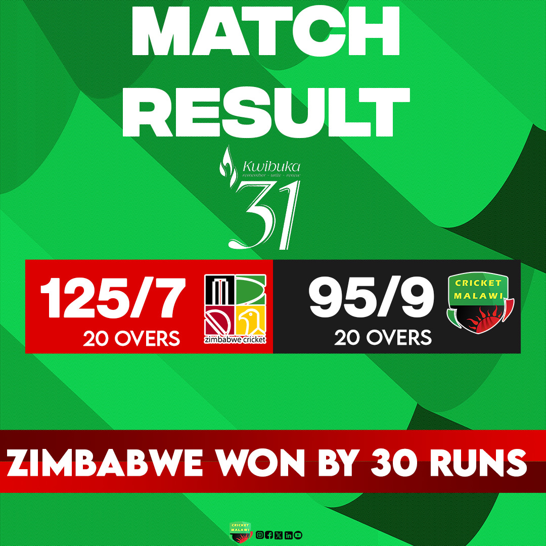 After winning the toss and opting to bowl first, the team put up a disciplined performance, limiting Zimbabwe to 125/7 in 20 overs. Despite a valiant chase, Malawi closed their innings at 95/9, falling short by 30 runs but showcasing unwavering commitment until the very end.